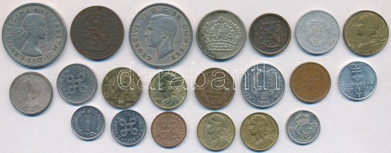 21db-os vegyes külföldi fémpénz tétel, benne Hollandia, Nagy-Britannia, Finnország, Svédország, Franciaország, Románia és Szlovákia T:2,2- 21pcs of varios coin, including Netherlands, Great Britain, Finland, Sweden, France, Romania and Slovakia C:XF,VF