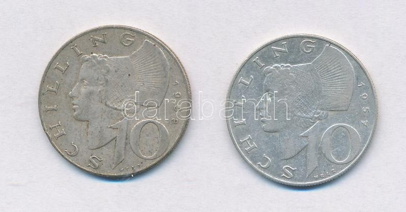 Ausztria 1957-1958. 10Sch Ag (2x) T:2,2- Austria 1957-1958. 10 Schilling Ag (2x) C:XF,VF