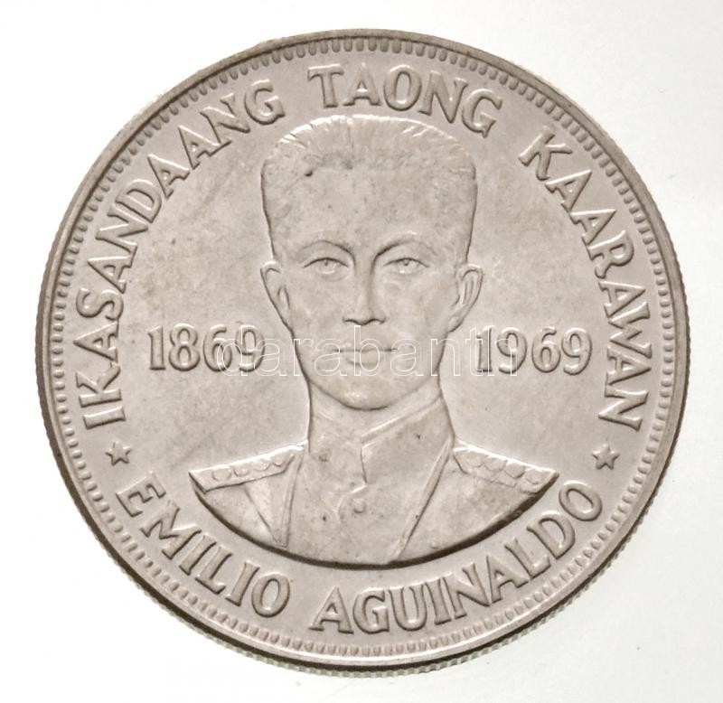 Fülöp-szigetek 1969. 1P Ag "100 éve született Aguinaldo" T:1- Philippines 1969. 1 Piso Ag "Centennial - Birth of Aguinaldo" C:AU Krause KM#201