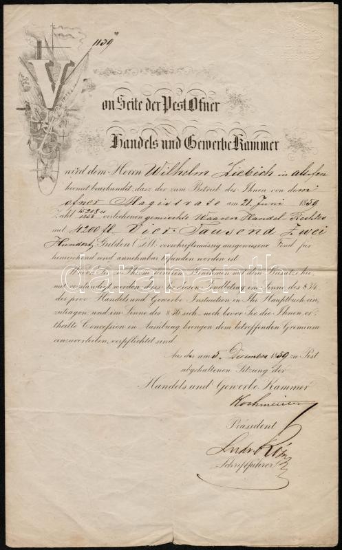 1859 Pest, A Pesti és Budai Kereskedő és Iparkamara által kiállított p... https://www.darabanth.com/de/309-Fernauktion/309.0/Andere-Sammelgebiete/Dokument~16/1859-Pest-A-Pesti-es-Budai-Kereskedo-es-Iparkamara-altal-kiallitott-penzugyekkel-kapcsolato~II1686314
