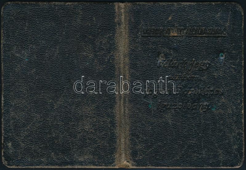 Beschreibung: 1942-1946 Magyar Királyi Államvasutak féláru-jegy váltására jogosító arcképes igazolvány, fényképpel, aláírással, érvényesítő bélyegekkel, kopottas bőr tokban.