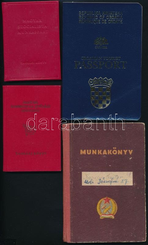 Vegyes okmány tétel, útlevél (Croatian tourist passport, Magyar Kommunista Ifjúsági Szövetség, sportegyesületi tagsági könyv, szolgáltai cselédkönyv, stb.), 10 db