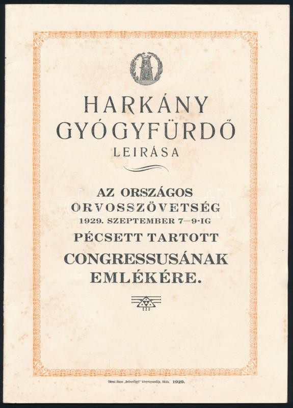 1929 Harkány Gyógyfürdő leírása, az Országos Orvosszövetség Pécsett ta... https://www.darabanth.com/de/309-Fernauktion/309.0/Andere-Sammelgebiete/Drucksachen~26/1929-Harkany-Gyogyfurdo-leirasa-az-Orszagos-Orvosszovetseg-Pecsett-tartott-kongresszusan~II1685974