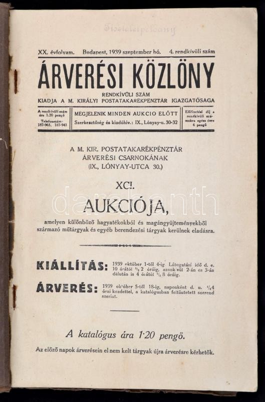 1939 Az Árverési Közlöny 20 évf. 4 rendkívüli száma benne az aukció r... https://www.darabanth.com/de/309-Fernauktion/309.0/Andere-Sammelgebiete/Drucksachen~26/1939-Az-Arveresi-Kozlony-20-evf-4-rendkivuli-szama-benne-az-aukcio-reszletei-arak-fotC3~II1639274