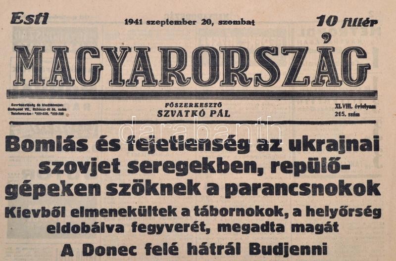 1941 Bp., Az Esti Lap Magyarország XLVIII. számának 22., 145., 215., 2... https://www.darabanth.com/de/309-Fernauktion/309.0/Andere-Sammelgebiete/Drucksachen~26/1941-Bp-Az-Esti-Lap-Magyarorszag-XLVIII-szamanak-22-145-215-246-289-szama-5-db~II1682505