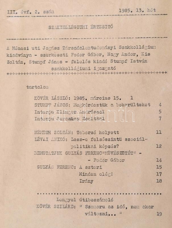 1984-1987 a Bibó Szakkollégium értesítőjének 6 db lapszáma, számos érd... https://www.darabanth.com/de/309-Fernauktion/309.0/Andere-Sammelgebiete/Drucksachen~26/1984-1987-a-Bibo-Szakkollegium-ertesitojenek-6-db-lapszama-szamos-erdekes-irassal~II1683538