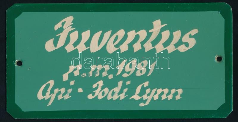 Beschreibung: "Juventus" - versenyló fém box táblája, 10x19 cm