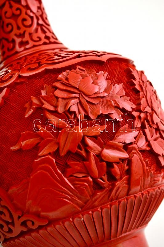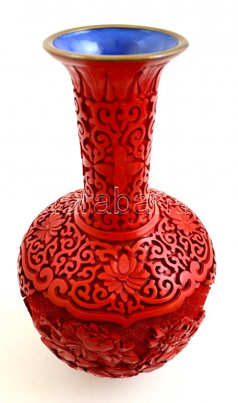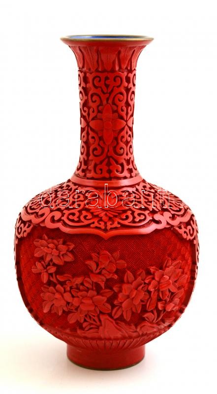 Kínai vörös lakkfaragásos zománcozott réz váza, jelzés nélkül, m: 25,5... https://www.darabanth.com/de/309-Fernauktion/309.0/Andere-Sammelgebiete/Flohmarkt~11/Kinai-voros-lakkfaragasos-zomancozott-rez-vaza-jelzes-nelkul-m-25-5-cm~II1683636