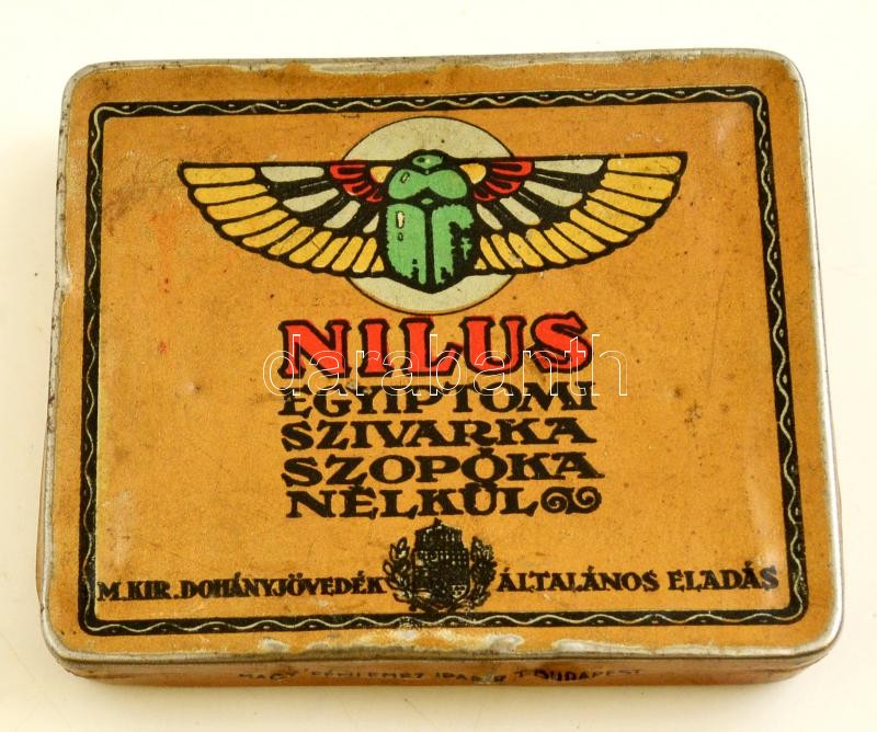 Nílus egyiptomi szivarka fém doboza, kopásnyomokkal, 9x7,5x1,5 cm https://www.darabanth.com/de/309-Fernauktion/309.0/Andere-Sammelgebiete/Flohmarkt~11/Nilus-egyiptomi-szivarka-fem-doboza-kopasnyomokkal-9x7-5x1-5-cm~II1683215
