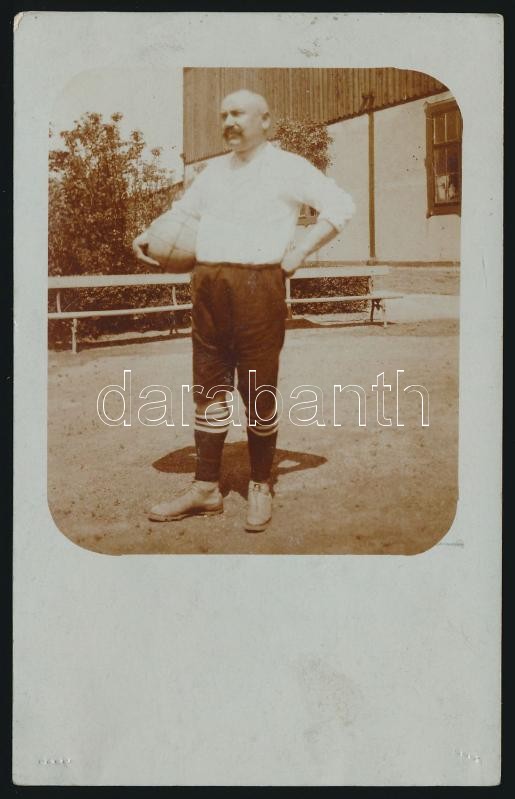 cca 1930 Régi idők focija..., labdarúgó labdával, fotólap, 14×9 cm https://www.darabanth.com/de/309-Fernauktion/309.0/Andere-Sammelgebiete/Foto~28/cca-1930-Regi-idok-focija-labdarugo-labdaval-fotolap-14C3979-cm~II1686470