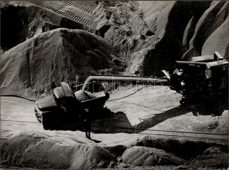Beschreibung: cca 1969 Gebhardt György (1910-1993) budapesti fotóművész hagyatékából 1 db kasírozott, jelzés nélküli vintage fotó (Külszíni bánya), 29x39 cm