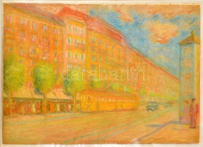 Beschreibung: Diener jelzéssel: Sárga villamos. Pasztell, papír, jelzett, foltos, szakadásokkal, 40×57 cm