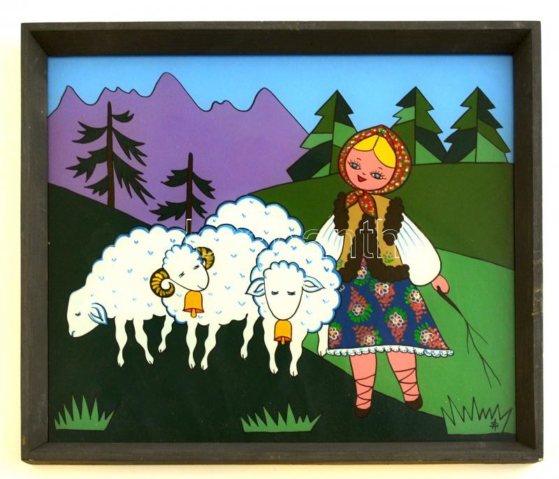 Beschreibung: SA jelzéssel: Birkapásztor lány. Festett üvegkép. keretben, 25×29 cm