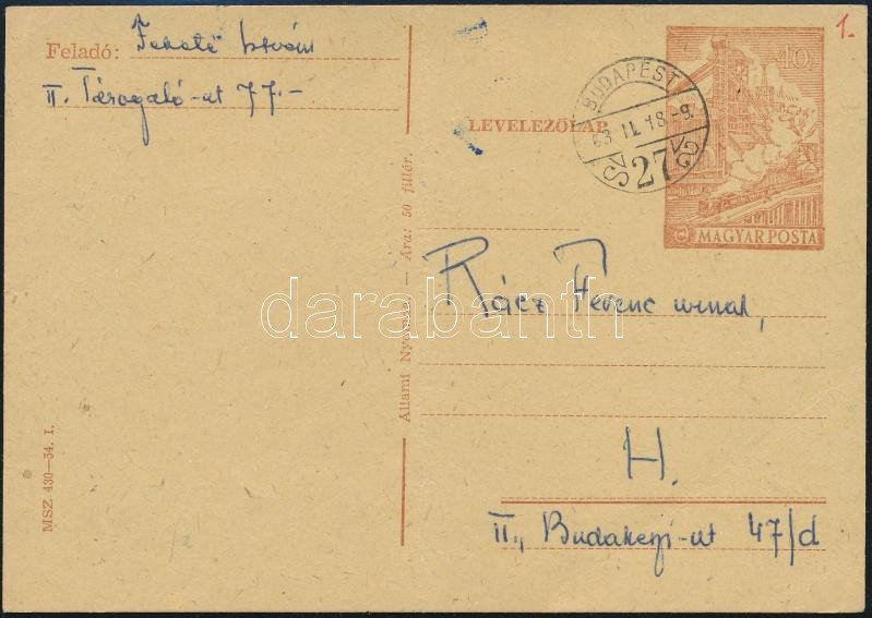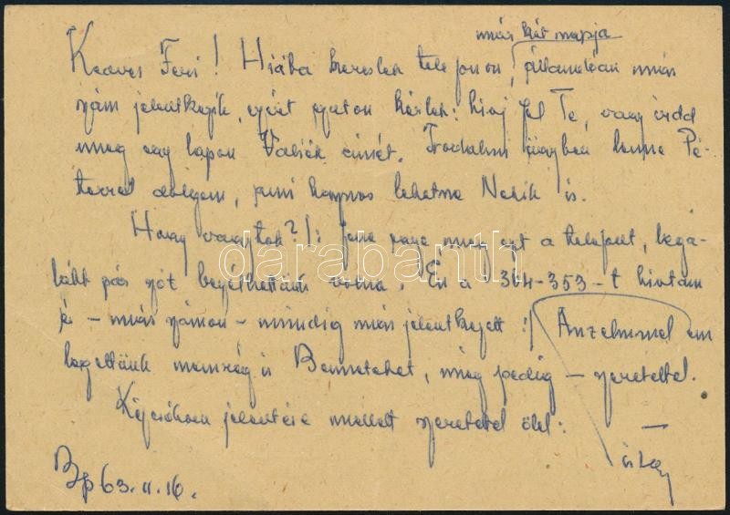 1963 Fekete István (1910-1970) által megírt levelezőlap Rácz Ferencnek, göllei kántor tanítónak, Rácz Vali (1911-1997) színész- és énekesnő apjának, aki Fekete István apja után lett a község tanítója és ott tanított 1910-től 1948-ig, aláírással.