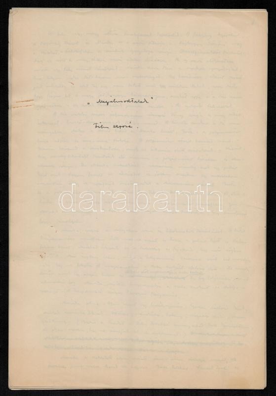 Vaszary János (1899-1963) Megálmodtalak c. film expozéjának kézirata végig magyar nyelven. Összesen 15 beírt oldalon / Autograph movie summary from Janos Vaszary in Hungarian