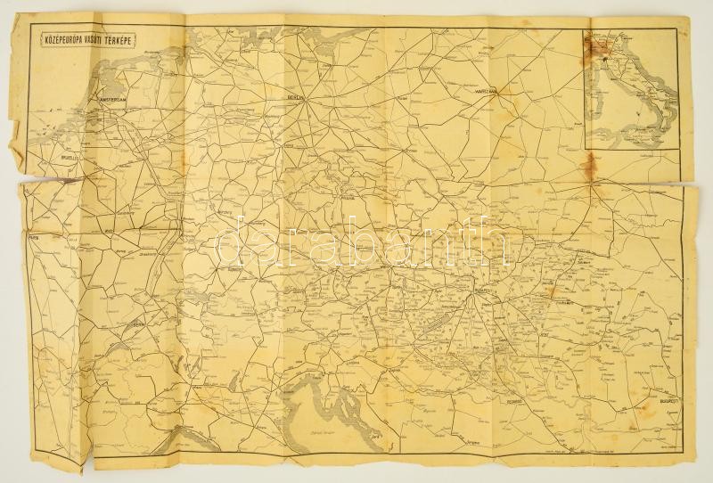 cca 1920-1930 A magyar és közép-európai vasutak hálózata, kétoldali té... https://www.darabanth.com/de/309-Fernauktion/309.0/Andere-Sammelgebiete/Landkarten~25/cca-1920-1930-A-magyar-es-kozep-europai-vasutak-halozata-ketoldali-terkep-sok-reklammal-~II1681733