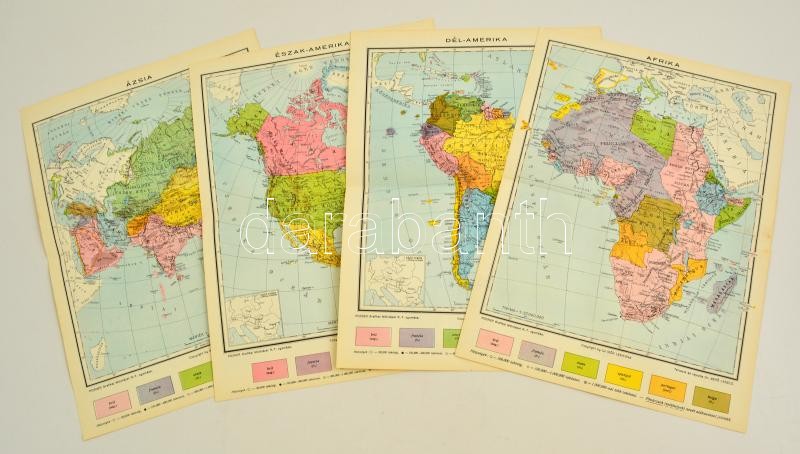 Beschreibung: cca 1930-1940 4 db térképmelléklet az Új idők lexikonából: Afrika, Észak-Amerika, Ázsia, Dél-Amerika, 33×24,5 cm