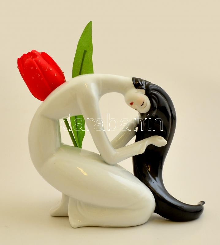 Beschreibung: Fésülködő hölgy, jelzetlen porcelán figura, kézzel festett, hibátlan, 19x21 cm