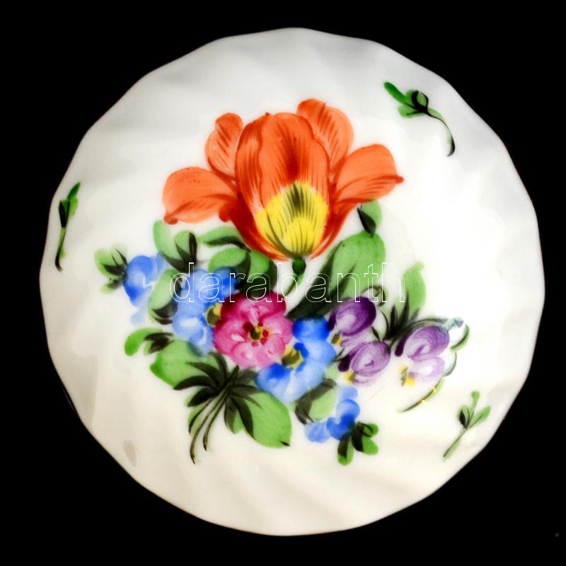 Beschreibung: Herendi porcelán virágmintás ékszertartó dobozka, kézzel festett, jelzett, hibátlan, d: 7 cm, m: 4 cm