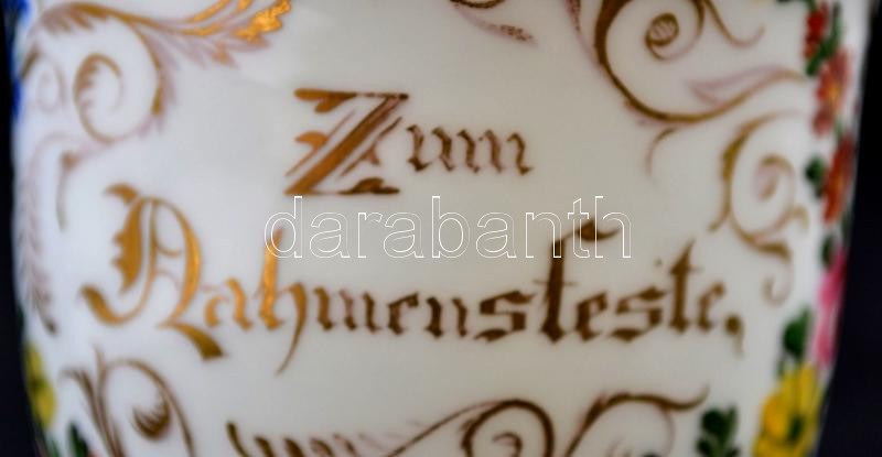 Kézzel festett német névnapi emlék bögre, kopott, jelzett (S), felirat... https://www.darabanth.com/de/309-Fernauktion/309.0/Andere-Sammelgebiete/Porzellan~7/Kezzel-festett-nemet-nevnapi-emlek-bogre-kopott-jelzett-S-felirattal-m8-5-cm~II1686265