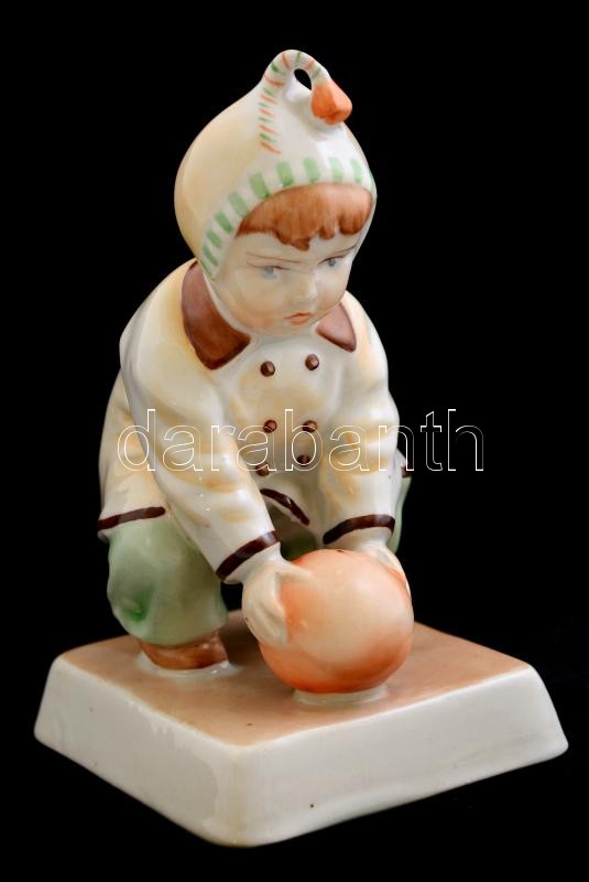 Beschreibung: Zsolnay porcelán labdával játszó kisfiú, kézzel festett, jelzett, hibátlan, m: 13 cm