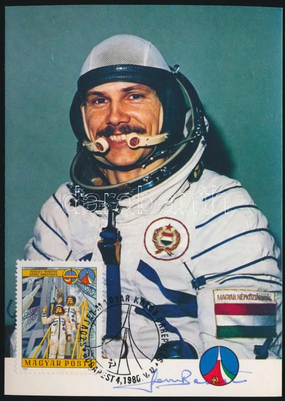 1981 Szovjet-magyar közös űrrepülés CM rajta Farkas Bertalan űrhajós ... https://www.darabanth.com/de/309-Fernauktion/309.0/Andere-Sammelgebiete/Signatur~18/1981-Szovjet-magyar-kozos-urrepules-CM-rajta-Farkas-Bertalan-urhajos-alairasaval~II1601175