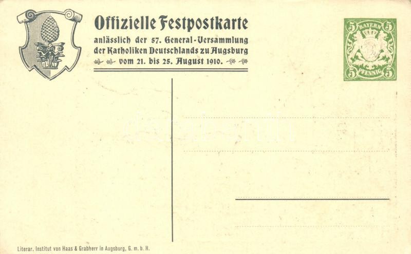 1910 Offizielle Festpostkarte anlässlich der 57. General-Versammlung der Katholiken Deutschlands zu Augsburg. Katholikentag / 57. General assembly of Catholic society in Germany. 5 Pfennig Ga. (EK)