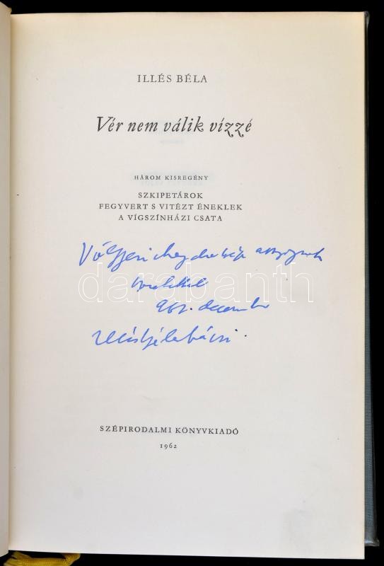 Illés Béla: Vér nem válik vízzé. Bp., 1962, Szépirodalmi Könyvkiadó. D... https://www.darabanth.com/de/309-Fernauktion/309.0/Bucher/Bucher-Andere-kuriositaten~500016/Illes-Bela-Ver-nem-valik-vizze-Bp-1962-Szepirodalmi-Konyvkiado-DEDIKALT-Kiadoi-egC3~II1685947