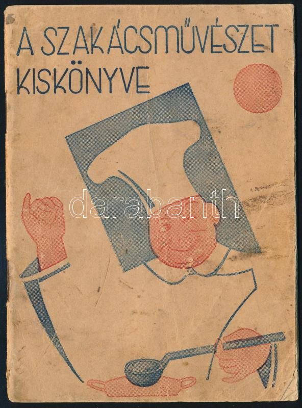 A szakácsművészet kiskönyve. Összeállította: G. Nagy Zsuzsanna. Bp., 1936, Erzsébet-nyomda, 32 p. Kiadói papírkötés, kissé kopott, kissé foltos borítóval, kissé foltos lapokkal.