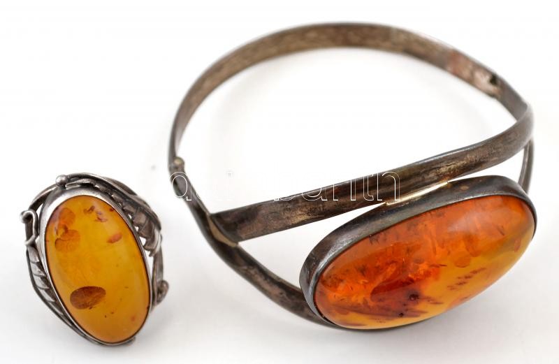 Beschreibung: Ezüst (Ag.) gyűrű és karkötő borostyán kővel, jelzett, bruttó: 41 g