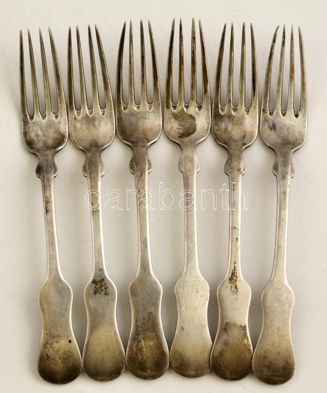 Ezüst (Ag.) villa készlet (6 db), jelzett, h:17,5 cm (6×), nettó:256 g https://www.darabanth.com/de/309-Fernauktion/309.0/Juwelen/Juwelen~600317/Ezust-Ag-villa-keszlet-6-db-jelzett-h17-5-cm-6C397-netto256-g~II1680179
