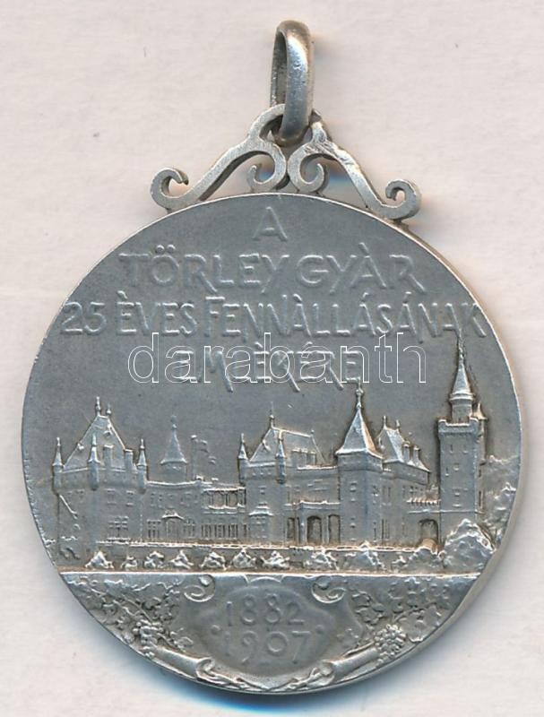 Beschreibung: Szirmai Tony (Antal) (1871-1938) 1907. "A Törley Gyár 25 éves fennállásának emlékére / Törley József" ezüstözött fém emlékérem füllel (28mm) T:1-