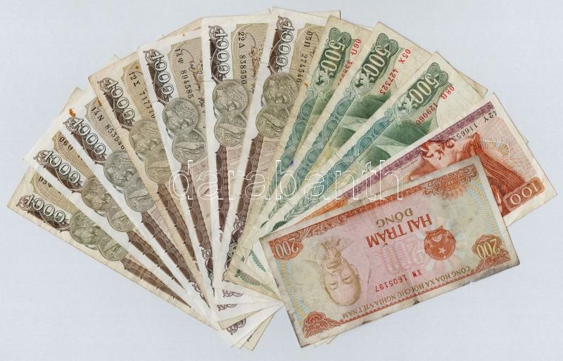 Beschreibung: Görögország 1978-1987. 11db bankjegy 100-500-1000D címletek + Vietnám 1987. 200D T:III,III-