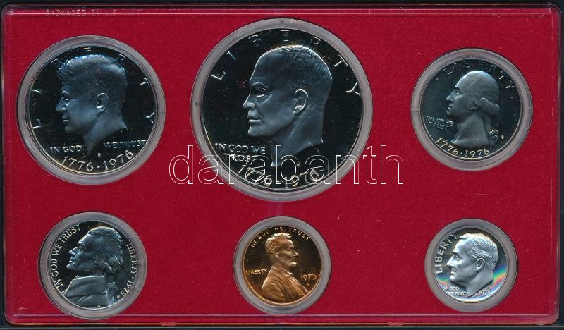 Amerikai Egyesült Államok 1975S 1d-1$ (6xklf) dísztokos szettben T:PP sérült tok