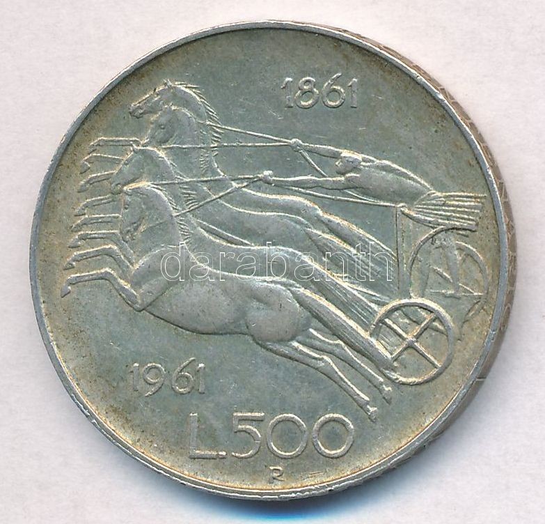 Ital... https://www.darabanth.com/de/309-Fernauktion/309.0/Numismatik/Weltweit-Munzen~400013/Olaszorszag-1961-500L-Ag-Olasz-egyseg-szazadforduloja-T2-ph--Italy-1961-500-Lire-Ag-Itali~II1678327