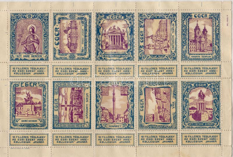 Beschreibung: 10 db téglajegy az egri Szt Imre kollégium javára