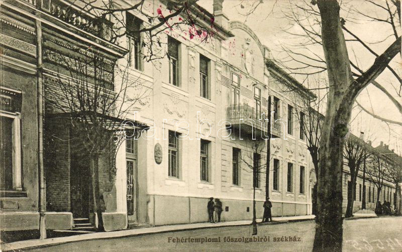 1917 Fehértemplom Főszolgabírói székház temesvári cenzúrabélyegzővel https://www.darabanth.com/de/31-Fernauktion/31.0/Ansichtskarten/~219/1917-Fehertemplom-Foszolgabiroi-szekhaz-temesvari-cenzurabelyegzovel~II59079