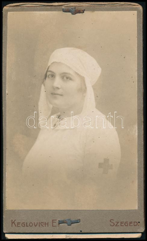 Beschreibung: cca 1900-1910 Szegedi Közúti Vaspálya Rt. fényképes szabad-jegy igazolványa, visszavonásig érvényes, vöröskeresztes ápolónő részére, 10x6 cm
