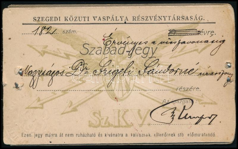 cca 1900-1910 Szegedi Közúti Vaspálya Rt. fényképes szabad-jegy igazol... https://www.darabanth.com/de/31-Gross-Auktion/31.1/Andere-Sammelgebiete/Dokument~12789/cca-1900-1910-Szegedi-Kozuti-Vaspalya-Rt-fenykepes-szabad-jegy-igazolvanya-visszavonasig-e~II1943962