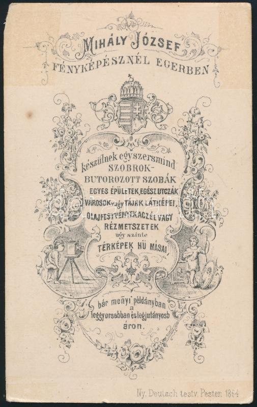 Beschreibung: cca 1864 Eger, Mihály József egri műtermében készült, vizitkártya méretű fénykép, 9,8x6 cm