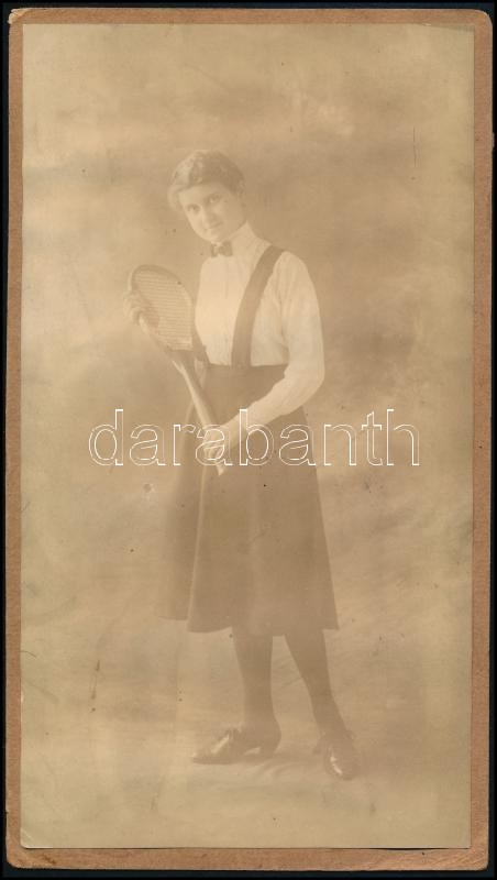 cca 1896-1900 Hölgy teniszfelszereléssel, kartonra ragasztott fotó, 19... https://www.darabanth.com/de/31-Gross-Auktion/31.1/Andere-Sammelgebiete/Foto~13320/cca-1896-1900-Holgy-teniszfelszerelessel-kartonra-ragasztott-foto-19C39710-cm~II1942254