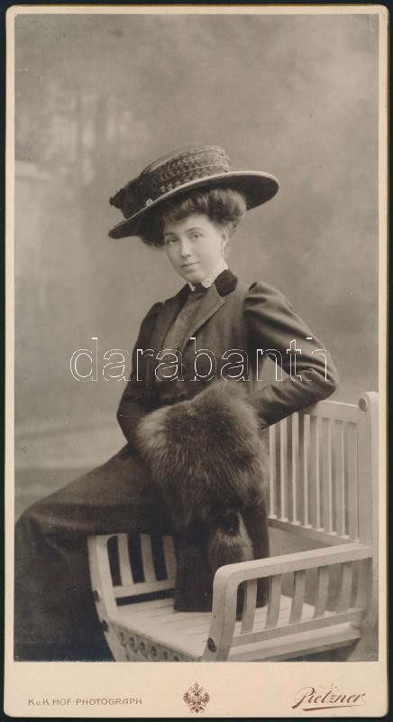 Beschreibung: cca 1900-1910 Kuncz Pálné Madarász Margit (1884-1959) teniszező keményhátú fotója, az első nemzetközileg is elismert magyar női teniszezőnő keményhátú fotója, Bécs, Pietzner műterméből, 21x11 cm