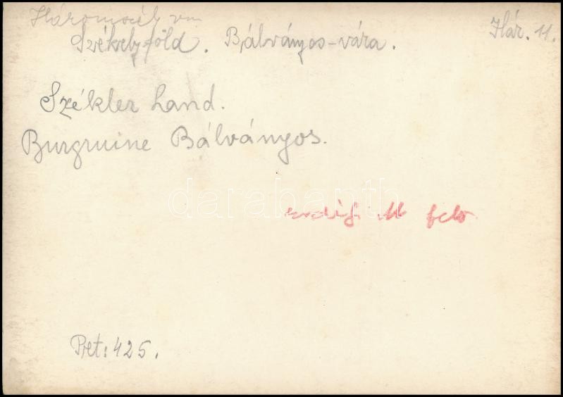cca 1910 Székelyföld, Bálványos vára, Erdélyi Mór felvétele, hátulján feliratozva, 11,5×16 cm / cca 1910 Ţara Seculior/Szeklerland, Cetatea Bálványos, with notes on its back, 11,5×16 cm