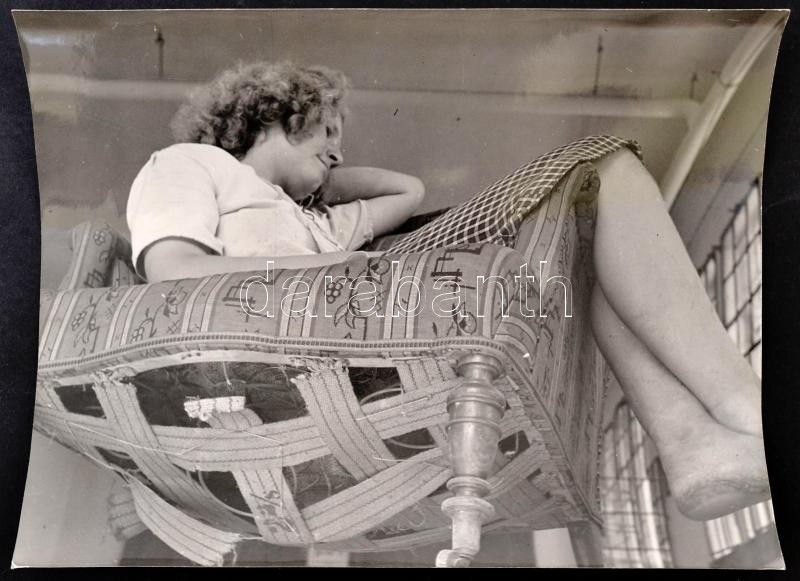 Beschreibung: cca 1950 Szabó Lajos (?-?) újpesti fotóművész hagyatékából, jelzés nélküli, vintage fotóművészeti alkotás (A kárpitos felesége), 24x30 cm