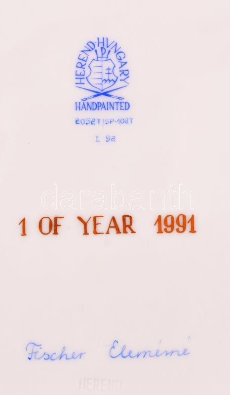 1991 Herendi szédertál, kézzel festett, jelzett (Fischer Elemérné), hi... https://www.darabanth.com/de/31-Gross-Auktion/31.1/Andere-Sammelgebiete/Judaica~12794/1991-Herendi-szedertal-kezzel-festett-jelzett-Fischer-Elemerne-hibatlan-d28-5-cm-Judai~II1949456