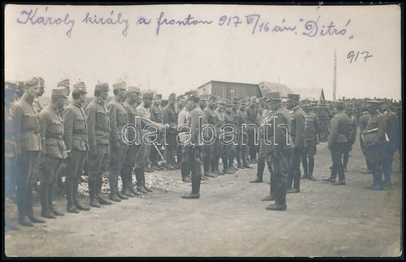 1917 Ditró, IV. Károly király a fronton. Feliratozott fotólap / King C... https://www.darabanth.com/de/31-Gross-Auktion/31.1/Andere-Sammelgebiete/Militaria~13316/1917-Ditro-IV-Karoly-kiraly-a-fronton-Feliratozott-fotolap-King-Charles-on-the-battlefield~II1944703