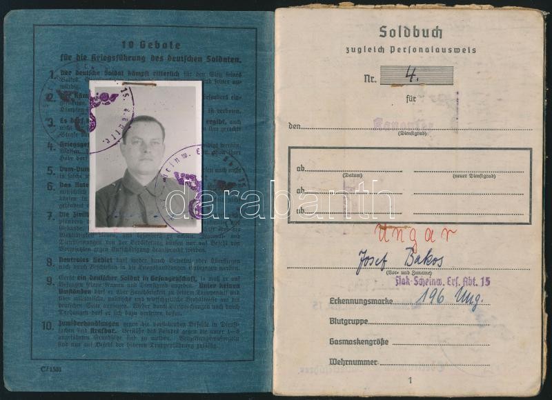 1945 Német hadseregben szolgált magyar katona fényképes zsoldkönyve (L... https://www.darabanth.com/de/31-Gross-Auktion/31.1/Andere-Sammelgebiete/Militaria~13316/1945-Nemet-hadseregben-szolgalt-magyar-katona-fenykepes-zsoldkonyve-Luftwaffe-Flakscheinwerfe~II1944595