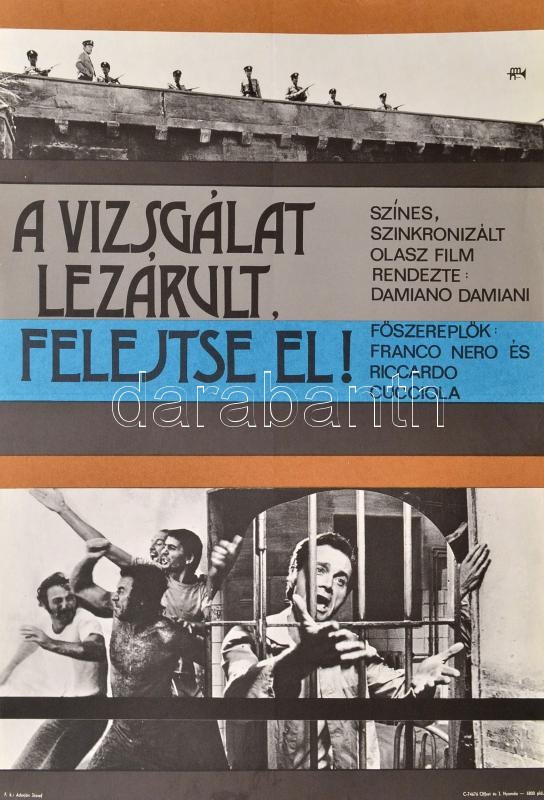 1971 A vizsgálat lezárult, felejtse el! filmplakát, főszerepben: Franc... https://www.darabanth.com/de/31-Gross-Auktion/31.1/Andere-Sammelgebiete/Poster~12802/1971-A-vizsgalat-lezarult-felejtse-el-filmplakat-foszerepben-Franco-Nero-Riccardo-Cucciola-~II1944808