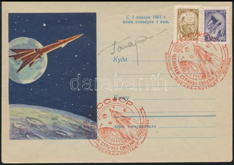 Jurij Alekszejevics Gagarin (1934-1968) szovjet űrhajós aláírása emlékborítékon /