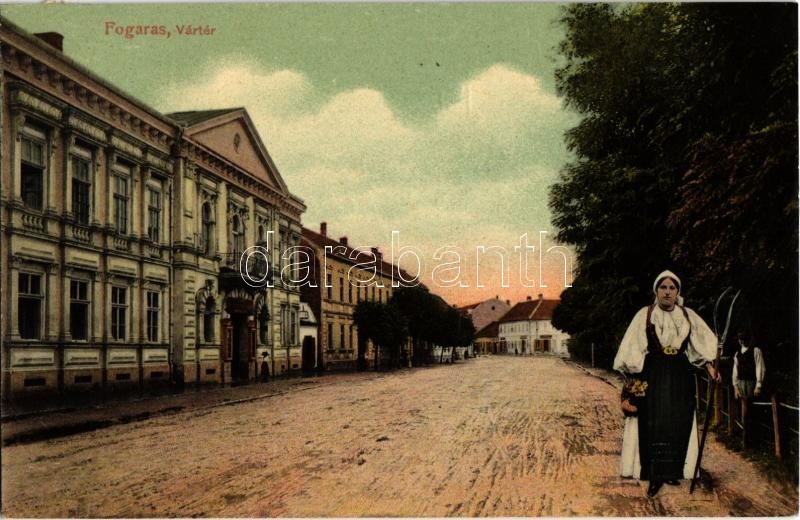 1909 Fogaras, Fagaras; Vártér, népviseletes asszony vasvillával. Kiadj... https://www.darabanth.com/de/31-Gross-Auktion/31.1/Ansichtskarten/Siebenburgen~13126/1909-Fogaras-Fagaras-Varter-nepviseletes-asszony-vasvillaval-Kiadja-Thierfeld-David-castl~II1948080